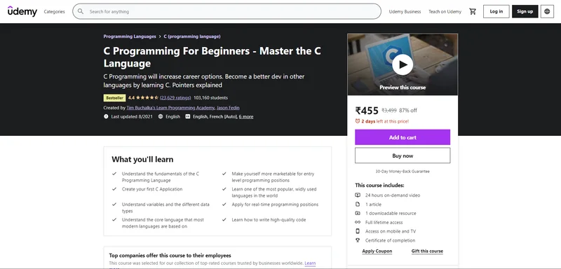Click here to Enroll in C Programming For Beginners – Master the C Language Coursewith an additional discount.