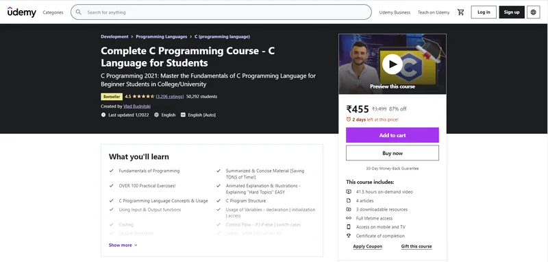 2. Complete C Programming Course – C Language for Students