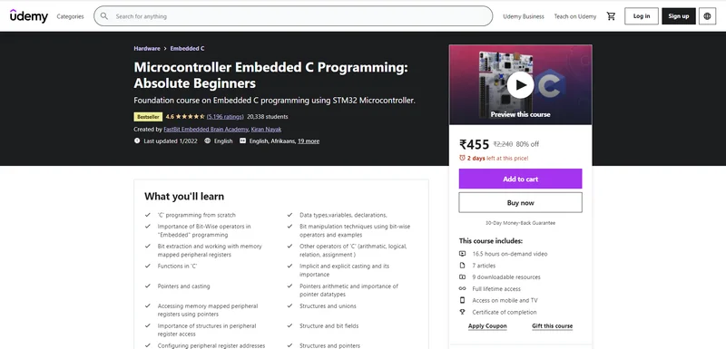 Click here to Enroll in Microcontroller Embedded C Programming: Absolute Beginners Course with an additional discount.