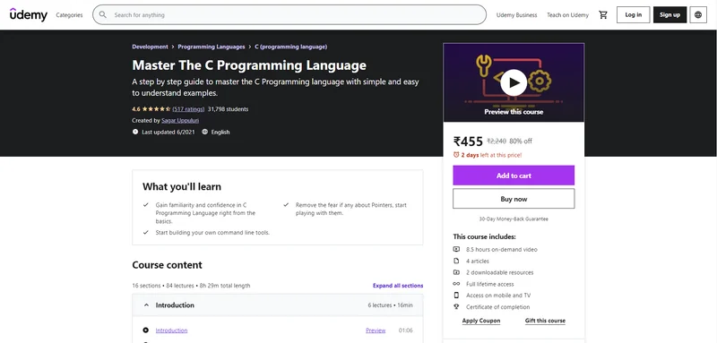Click here to Enroll on Master The C Programming Language Course with an additional discount.