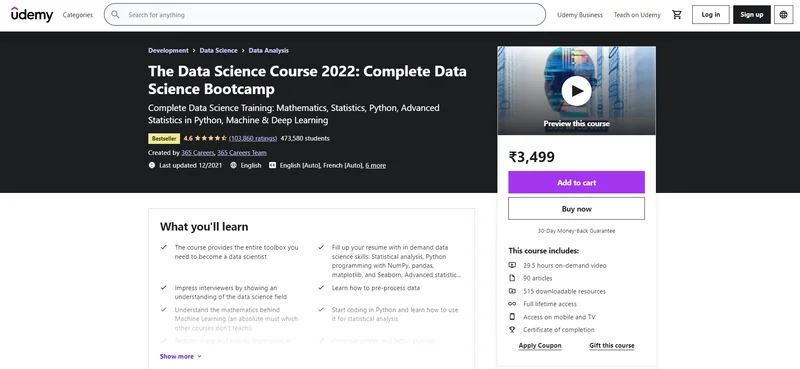 Click here to enrol in Complete 2022 Data Science & Machine Learning Bootcamp with an additional discount.