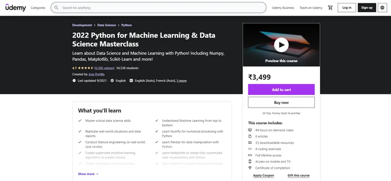 Click here to enrol in 2022 Python for Machine Learning & Data Science Masterclass with an additional discount.