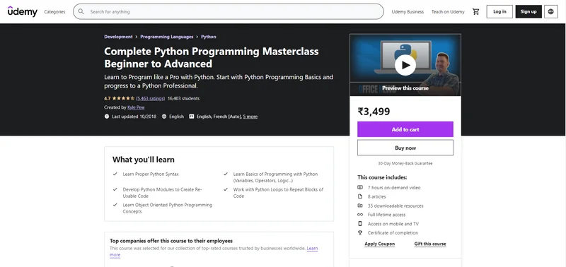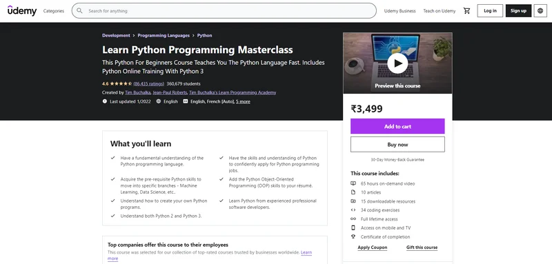 Click here to Enroll in Learn Python Programming Masterclass Course with an additional discount.