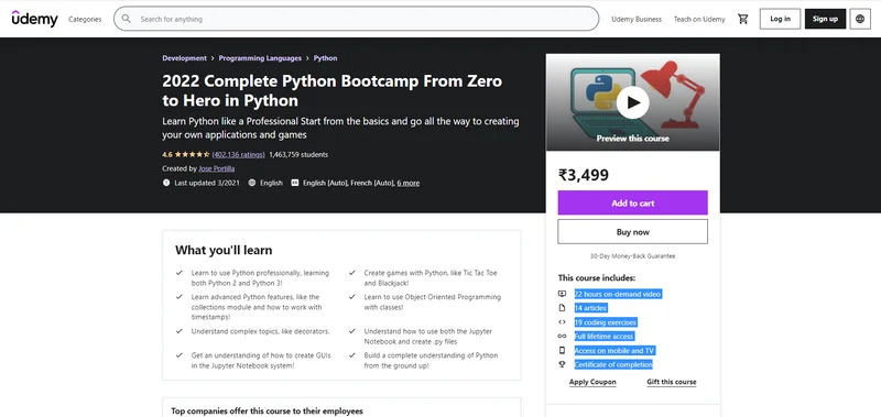 Click here to Enroll in 2022 Complete Python Bootcamp From Zero to Hero in Python Course with an additional discount.