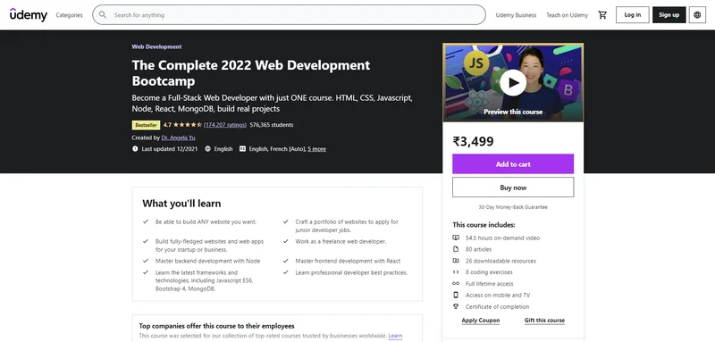 Click here to enrol in The Complete 2022 Web Development Bootcamp with an additional discount.
