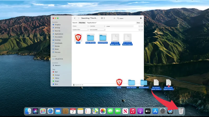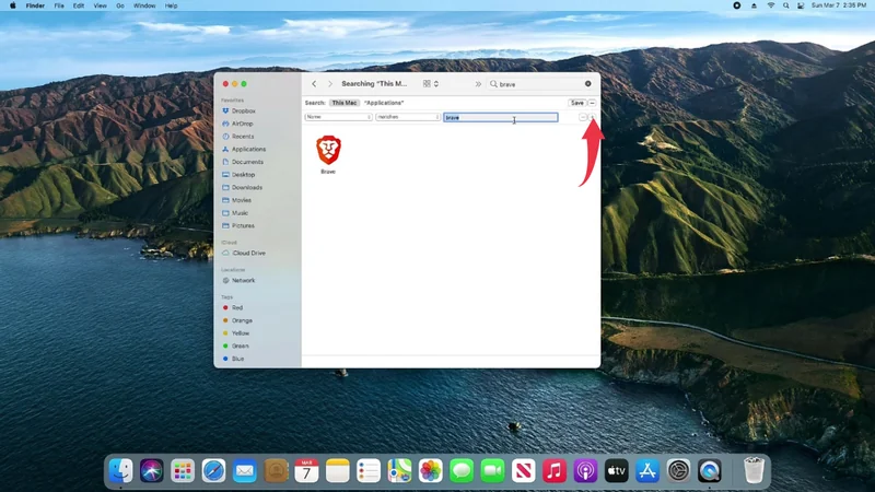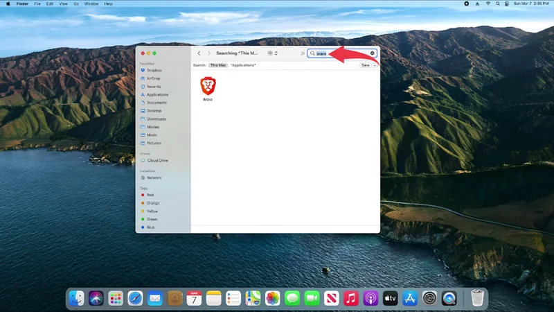 1) Open your finder and in the search bar, search for the application you want to uninstall. In our case, it’s “Brave Browser“.