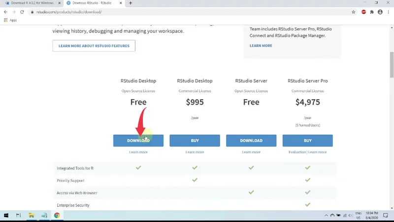1) Now we’ll download and install RStudio, and to do so follow the below-provided download link and click on the “RStudio Desktop” and you’ll be redirected to the downloads page of RStudio.