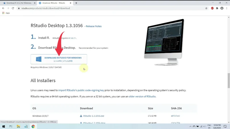 2) Click on the “Download RStudio For Windows” button and your download will start.