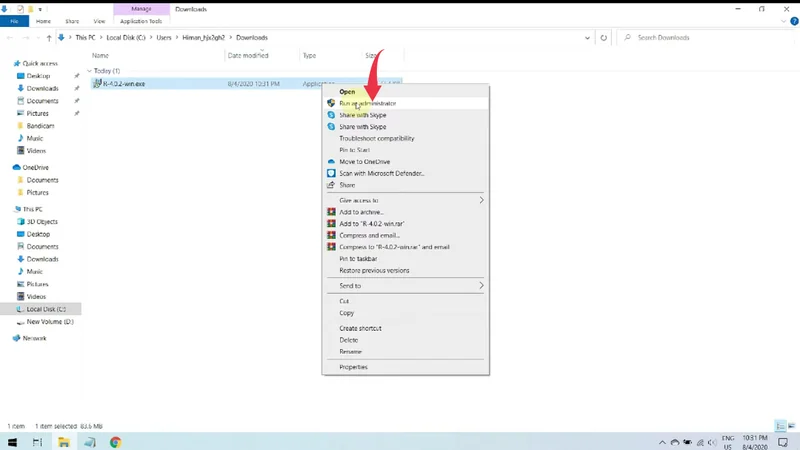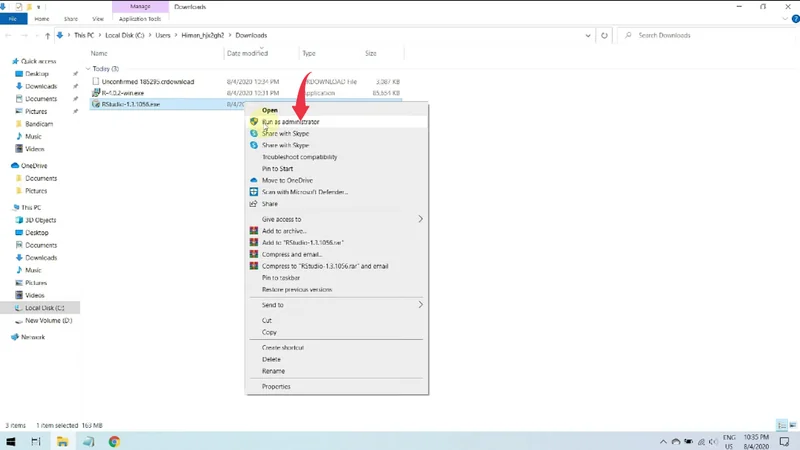3) Once the download gets finished open it in the folder where it has been downloaded, right-click and run it as administrator to install the RStudio setup wizard.
