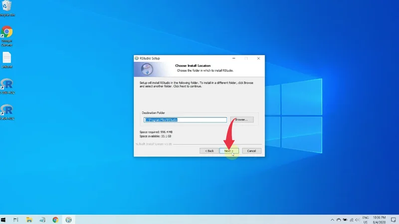 5) Now we have to select the installation location for Rstudio, we’ll stick to the default installation location so click on the Next button.