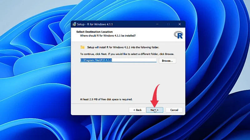 5) Next we’ll have to select the installation folder of R, we will stick to the default installation location so simply click Next.