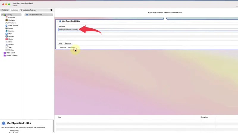 4) In the get specified URLs workspace’s address bar paste https://www.hotstar.com link.