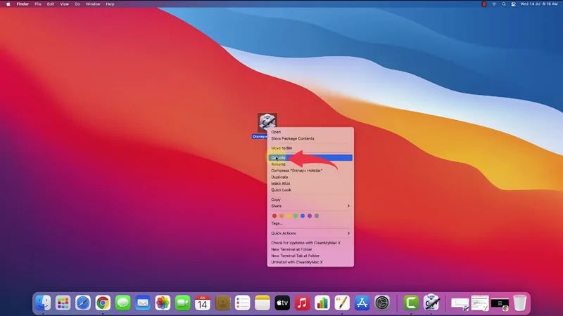 10) Now, on your home screen, a new app will get displayed by the name Disney+ Hotstar, simply right click on the app, click on Get Info.