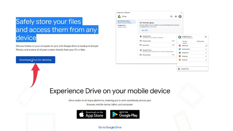1) Firstly we will download Google Drive, for our windows 11 machineFollow the download link provided below and click on the DOWNLOAD DRIVE FOR DESKTOP button.