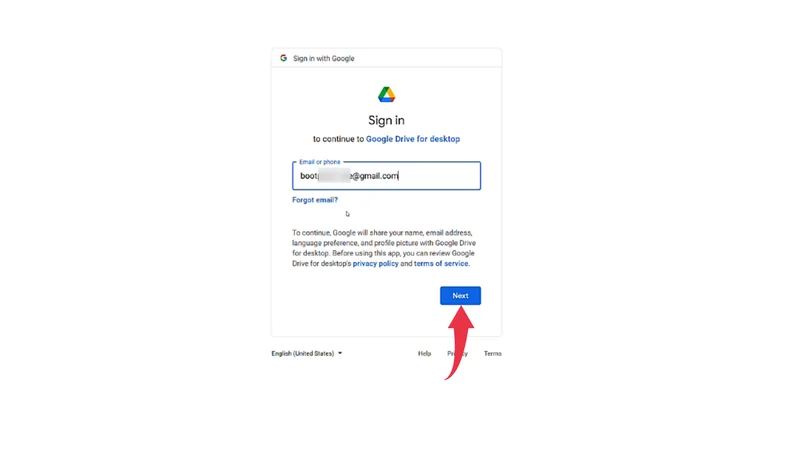 2) In the displayed text field enter your Gmail address. After that, click on the Next button.