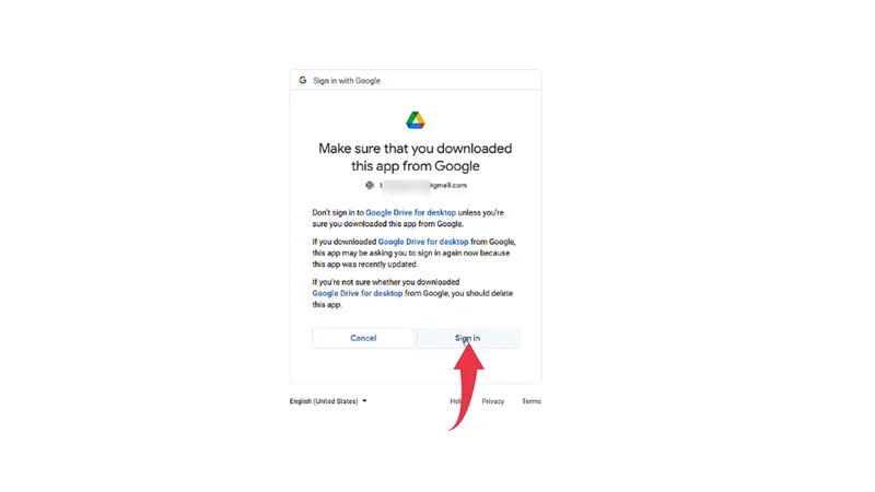 4) A security warning from Google will show up, so here click on the Sign-in button.