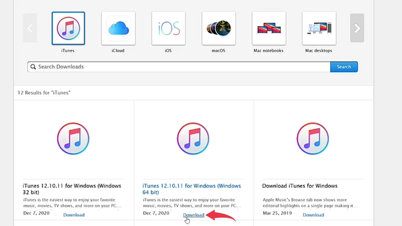 1) Firstly we will download Itunes, for our windows machine. Follow the download link provided below. Based on your Windows 11 system architecture click on the appropriate download button. In our case, it’s iTunes 12.10.11 for Windows (Windows 64 bit)