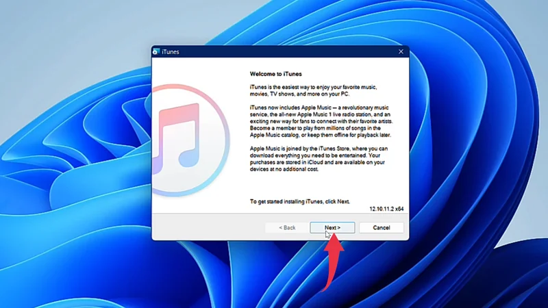 2) In the Welcome Screen of the iTunes installation window, click on the Next button.