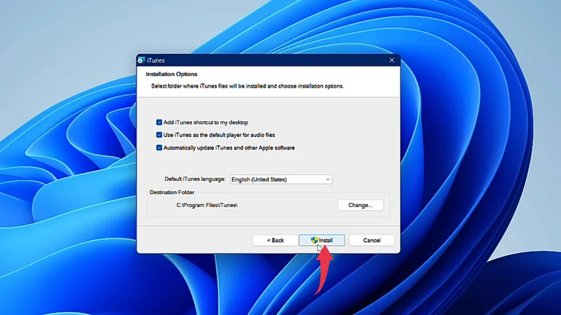 3) In this final installation window, click on the Install button to start iTunes installation.
