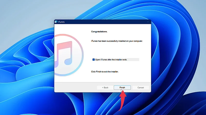 4) After successful installation, click on the finish button to launch iTunes on your Windows 11 machine.