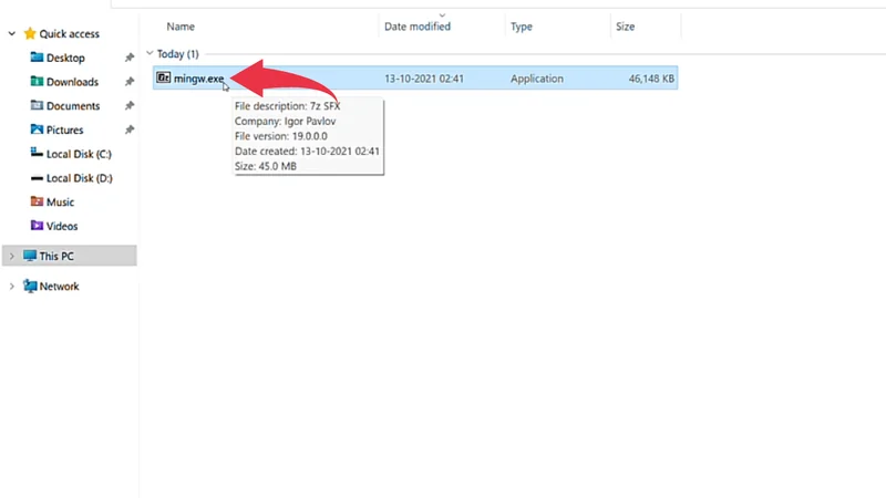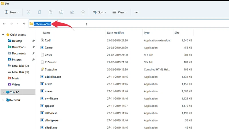 Step 2: Extract MinGW in Windows 11