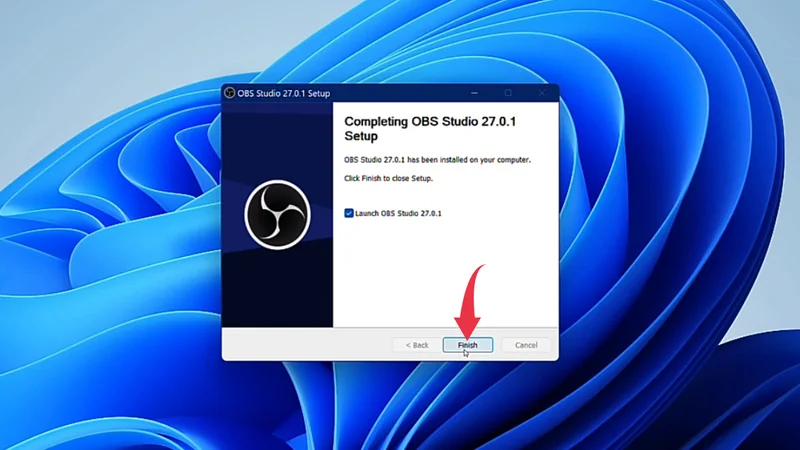 5) Once the installation gets successful click on the Finish button to close the setup wizard and launch OBS Studio on your Windows 11 machine.