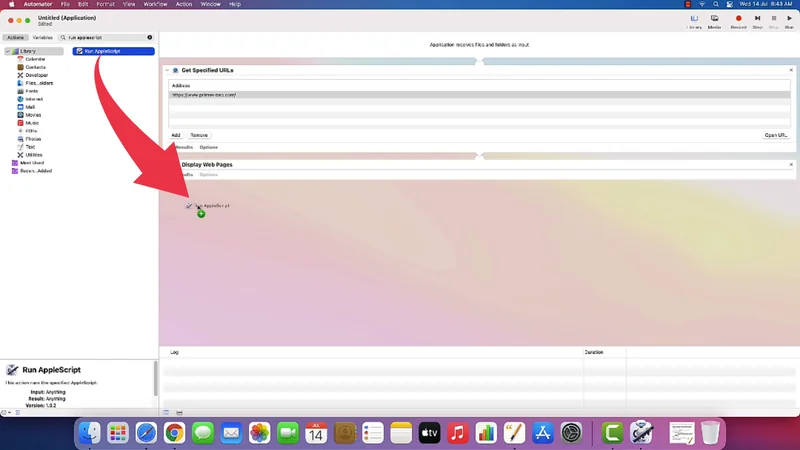 6) At last search for “Run Applescript” and drag this option to workspace too.
