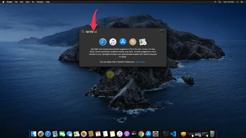 1) Open Up your terminal by typing “cmd+space”, type “terminal” in the search bar and press enter.