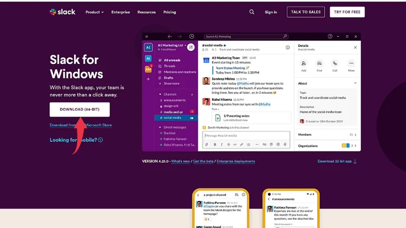 1) Firstly we will download Slack, for our windows 11 machine. Follow the download link provided below and click on the DOWNLOAD (64-Bit) button.