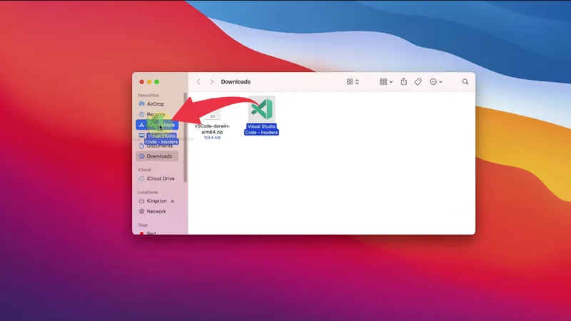 3) Once the file gets expanded, drag the newly expanded visual studio code to the applications folder.