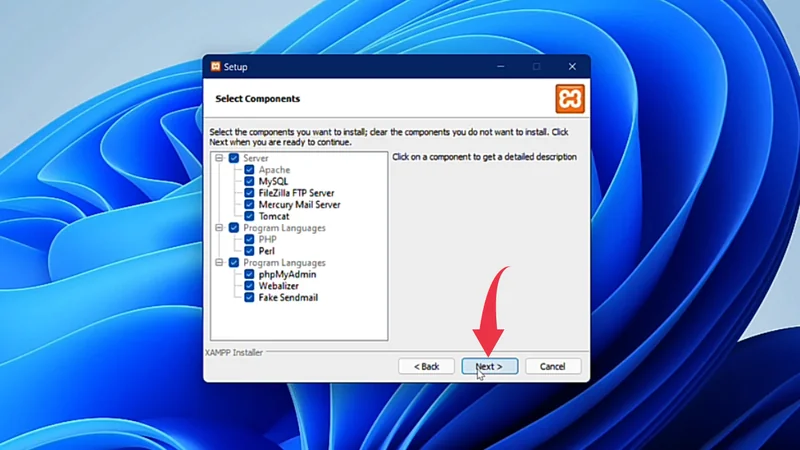 3) In the select components window as well click on the Next button.