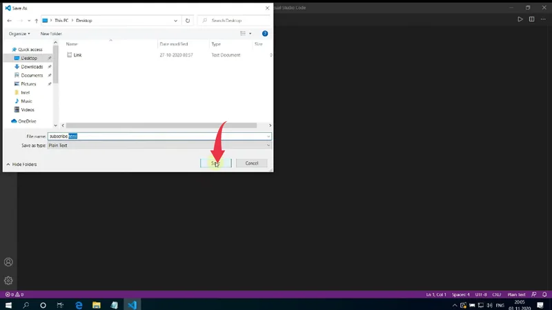 7) After that create a new file by pressing “Ctrl+N” and save it by any name you prefer. In our case, it’s “subscribe.html“.