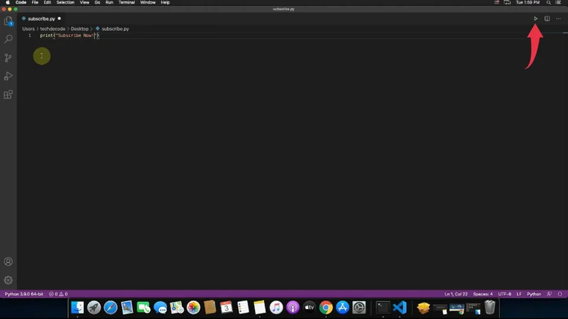 8) You’ll be automatically redirected to our “subscribe.py” program, in that program paste the below-provided code snippet and press the small play button to run the program.