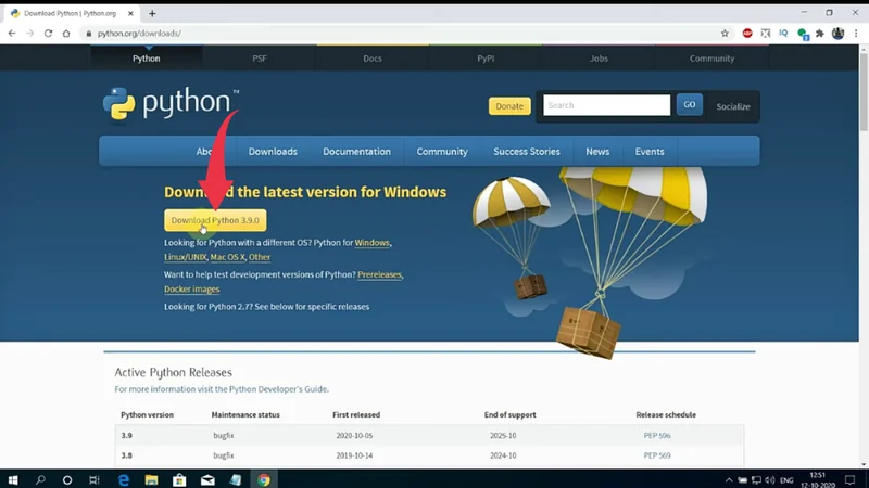 1) Firstly we have to install the latest python version available on the internet. Follow the below provided downloading link and you’ll be redirected to the official python downloads page. There click on the yellow download button and Python will start getting downloading.