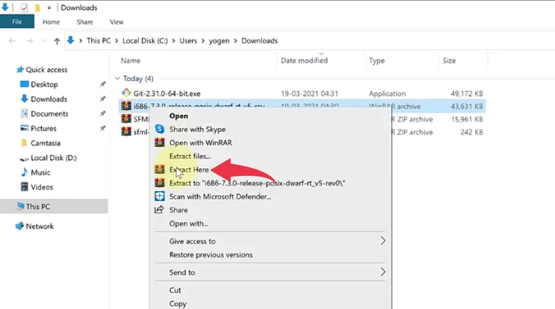 1) Right Click on the downloaded zip file we have downloaded from the prerequisites section and click on the Extract Here button. Repeat this same step with all the zip files we have downloaded from the prerequisites section.
