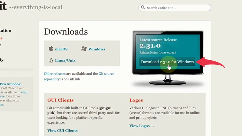 2) Click on the Download 2.31.0 For Windows button and git Installer will start downloading on your windows machine.