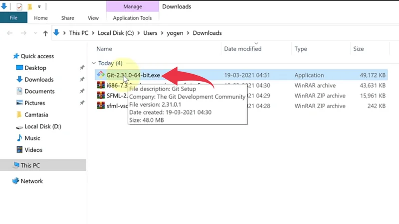 1) Open the downloaded files in the folder where they have been downloaded. There double click on the downloaded Git File to start its installation wizard.
