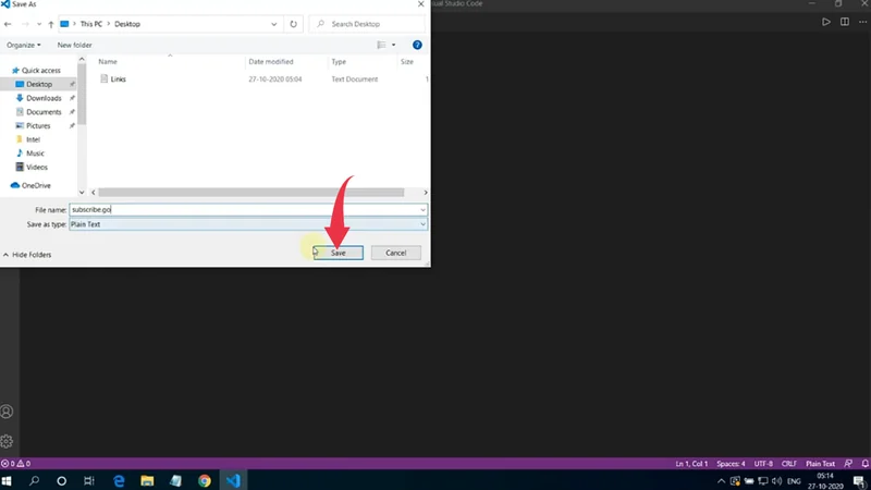 1) Come to the home screen of Visual Studio Code and create a new file by pressing “Ctrl+N”, save it by any name you prefer. In our case, it’s “subscribe.go”.
