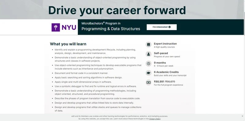 This course is available on the edX platform for beginners just starting to learn to program. New York University designed this course. This program is a composition of four minor studies that explain concepts of C++ and data structures in-depth.